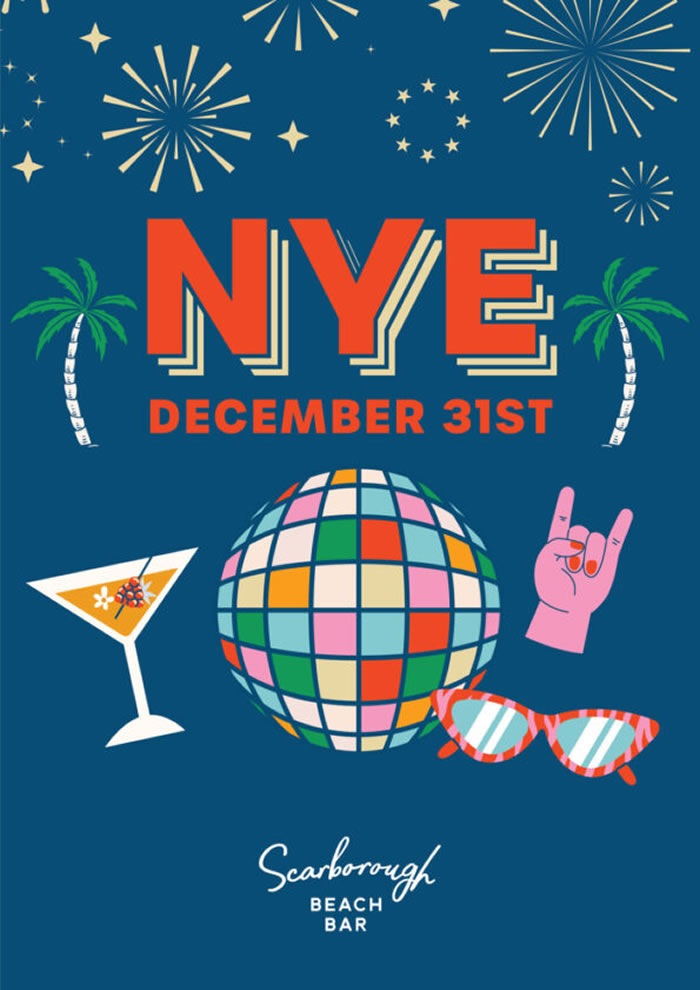 Celebrate New Year's Eve by the ocean at Scarborough Beach Bar — the perfect spot to dance, sip and soak up the summer vibes as you welcome 2026. Enjoy a night of live music, great energy, and unbeatable coastal views, open until 1am. Elevate your evening with a bottomless session from 9–11pm featuring spritz, bubbles, house wines, tap beers and shared plates in true Scarborough style.